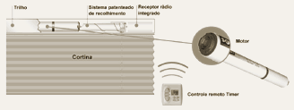 | Qualquer tipo de cortina que seja feita sob medida pode ser motorizada: rolô, celular, plissada, romana e também persianas de alumínio ou madeira. Basta levar em conta no momento da compra... |  |
